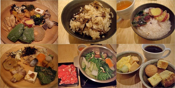 悶香菇飯與白粥搭漬物,都滿好吃的