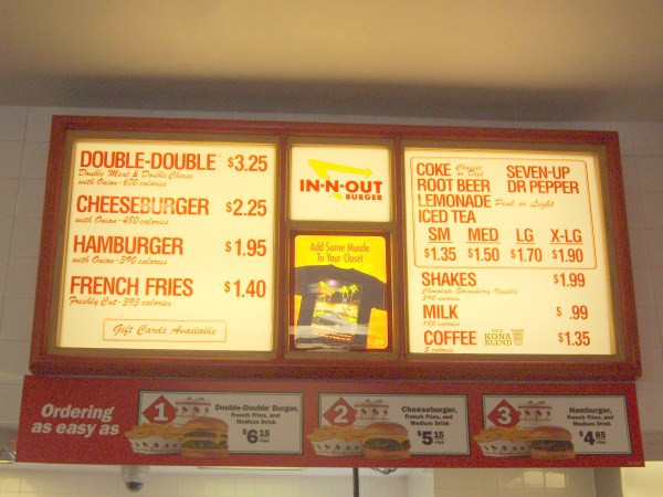 弟弟一個人去點餐,直接點了三份"Double-double combo" 跟 兩份"Cheeseburger combo"